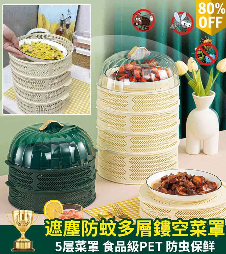 5層菜罩疊加收納、食品級PET防蟲保鮮!守護飲食健康!