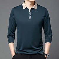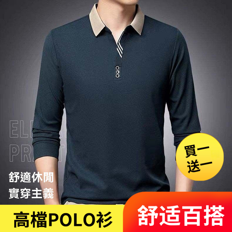2025新款男士商务休闲翻领長袖POLO衫--成熟男士必備!長袖休閒純色Polo衫,時尚翻領T恤,帥氣有型,盡顯男士魅力!