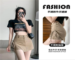 NT$1999夏日韓版純色牛仔短裙,高腰顯瘦設計,小眾不規則剪裁詳情 - 西裝闊腿褲NT$1099