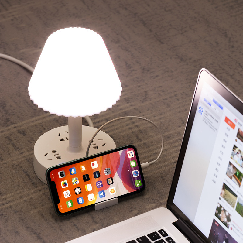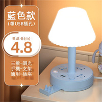 「三插孔4.8米帶USB」護眼多功能臺燈、插座學習床頭夜燈插頭臥室燈