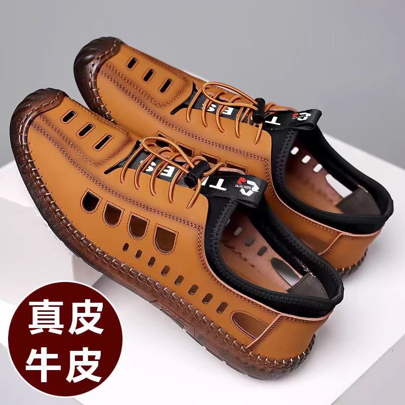 複古時尚真皮洞洞鞋 夏季镂空沙灘鞋涼皮鞋 夏季必備潮流單品