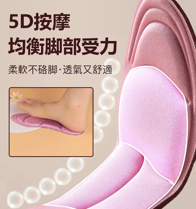 5D超軟加厚透氣吸汗防臭鞋墊,有效吸濕,讓腳時刻保持乾爽!可隨意裁剪大小,適合各種腳型和鞋碼