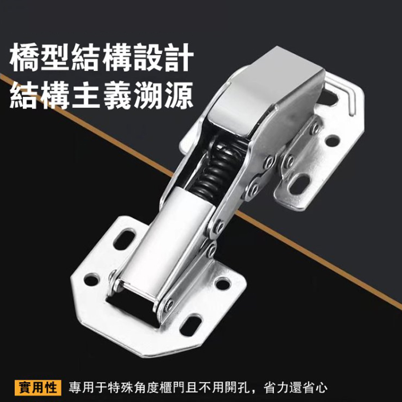 免打孔靜音合頁修複鉸鏈,安裝方便,無需打孔,無需開槽,直接用螺絲就可以固定,彈簧阻尼設計,適用於各種櫥櫃門衣櫃門
