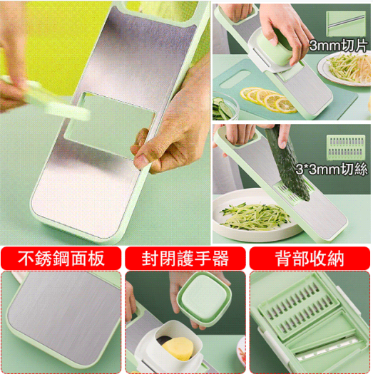 多功能切菜器不銹鋼蘿蔔土豆刨絲切絲器大蒜切片機 封閉式護手設計,保護手指,遠離刀片,省力不傷手,百變料理一套搞定