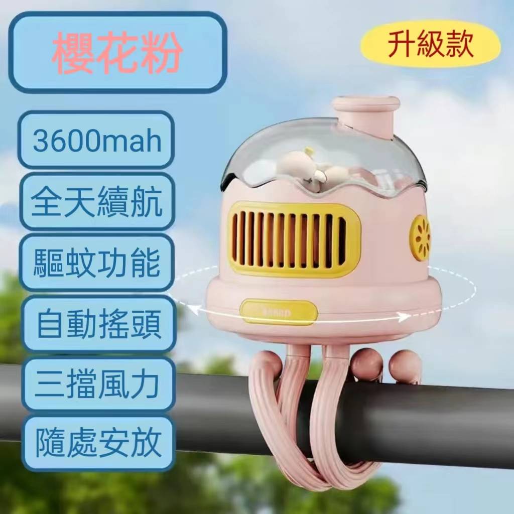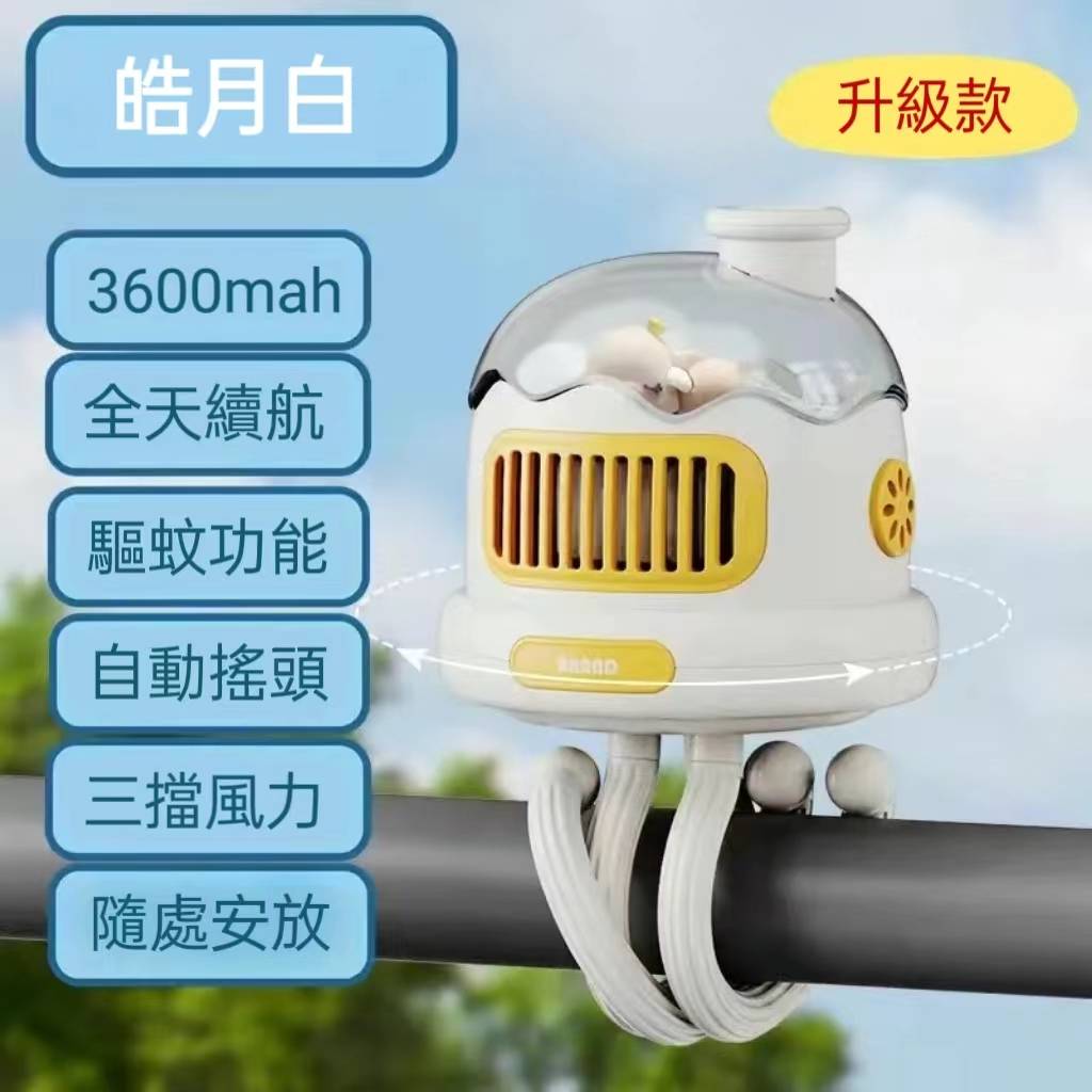 小风扇遛娃神器 驱蚊婴儿床 摇头风扇 360度摇头 八爪鱼挂脖风扇