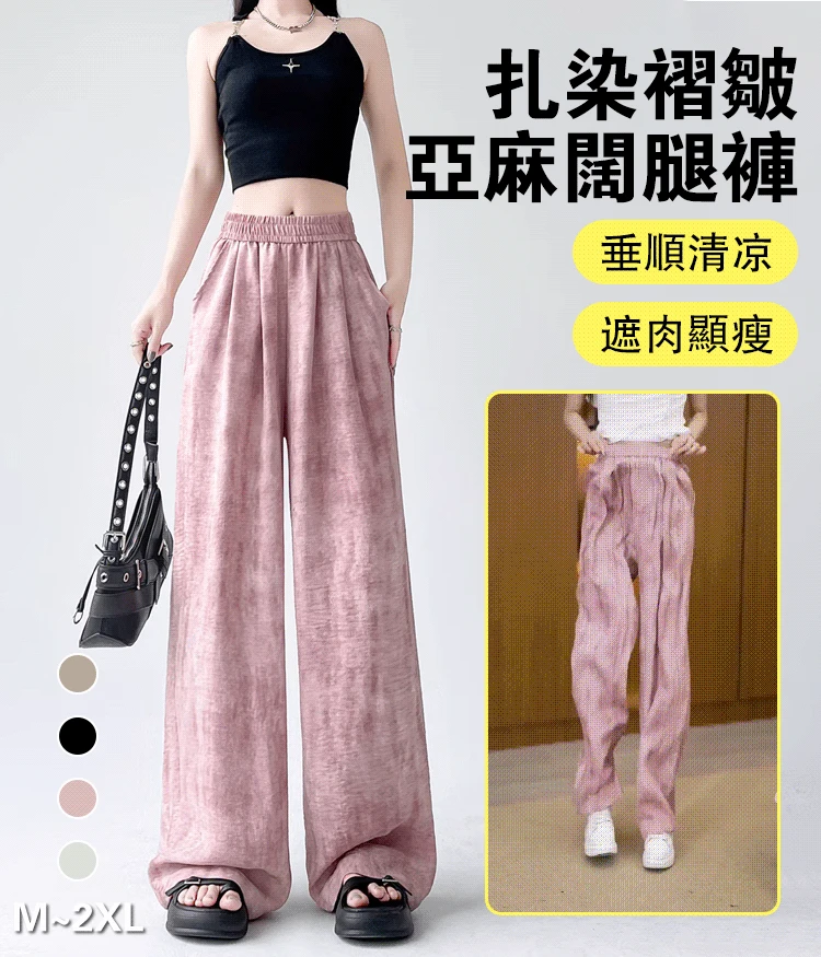 紮染褶皺亞麻闊腿褲,垂順清凉,遮肉顯瘦,收贅肉,遮胯大,真正的不挑身材,元氣爆炸