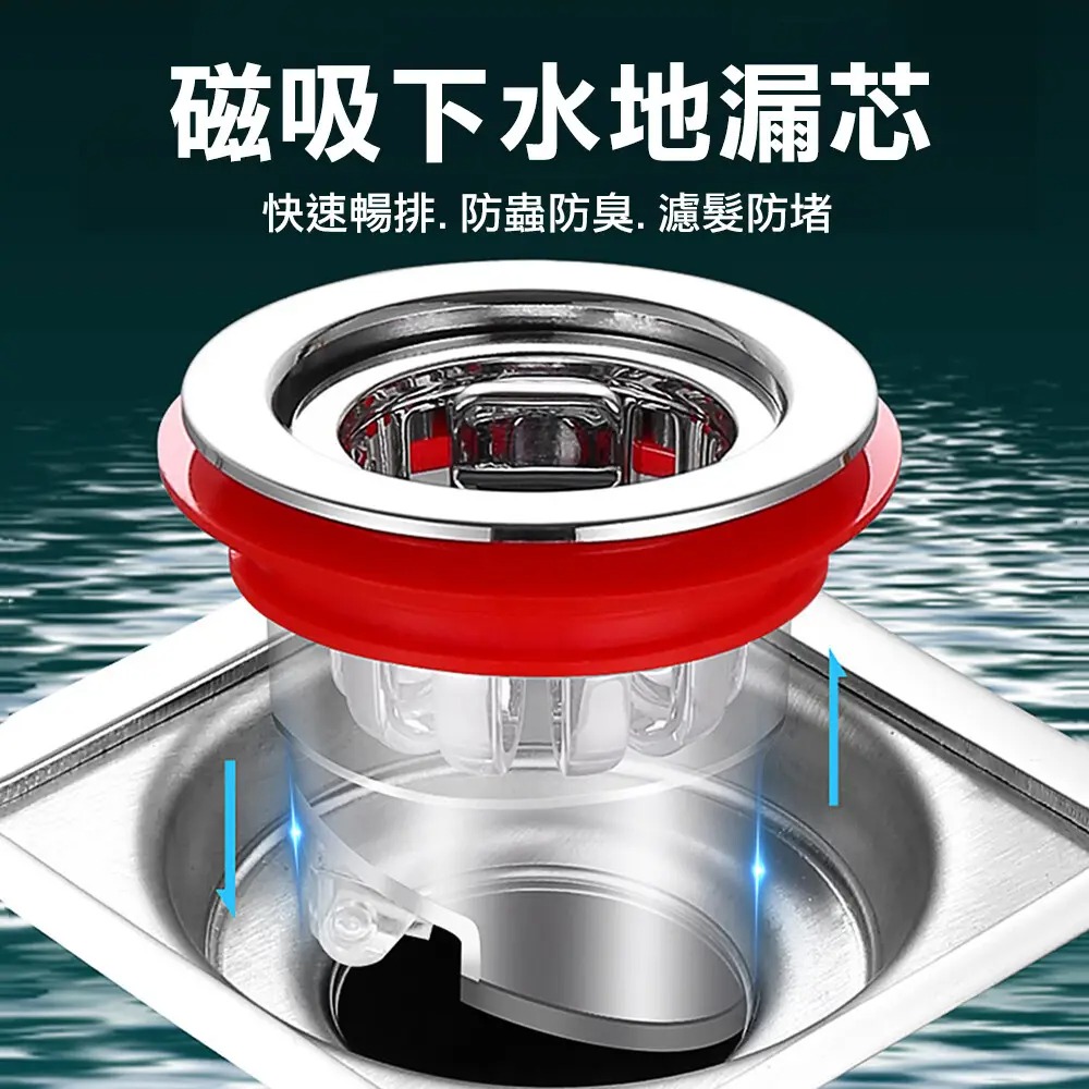 【日本進口-通用款磁吸地漏芯】自動回彈設計,防蟲防臭,濾髮防堵,嚴防反水!