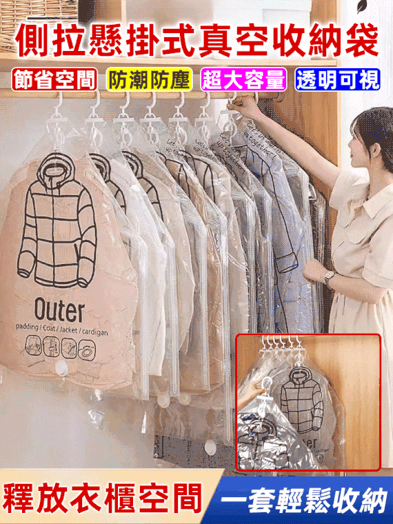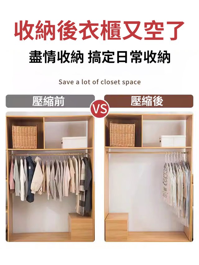 解放空間85%《真空壓縮收納袋》 每次換季換棉被/厚外套,真的很麻煩 家裡的棉被少說也有5-10套,直接收起來超級占空間(´・ω・`) 那~你可以考慮買看看這產品《減少空間85%,真空壓縮收納袋》 質量厚實、不用擔心損壞,買一組就能用5-10年 ◑▽◐ 而且額外還贈送真空抽風機,可愛小手手不用抽到手抽筋啦