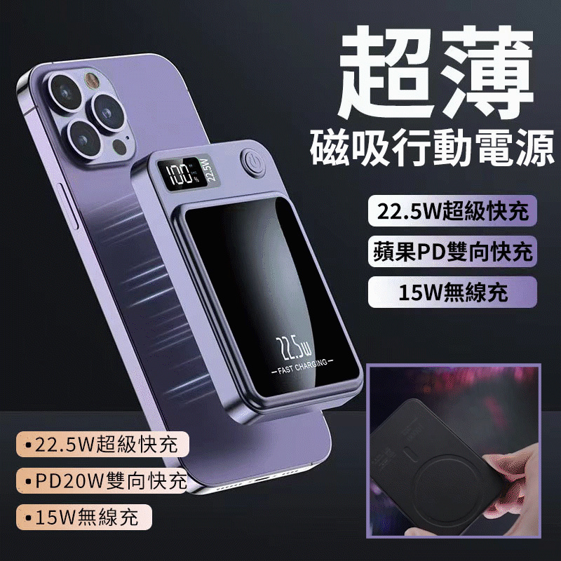 手機的第二塊電池【超大電池容量 拒絕電量焦慮】22.5W有線快充 15W無線充,二合一充電寶,出行無憂