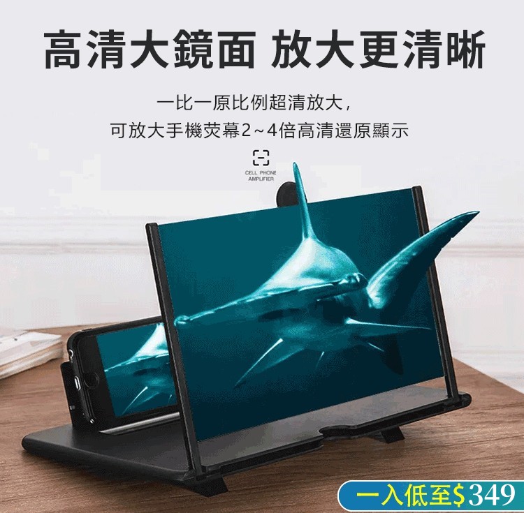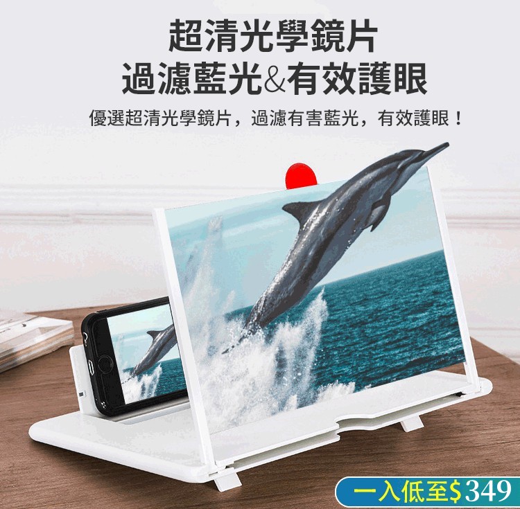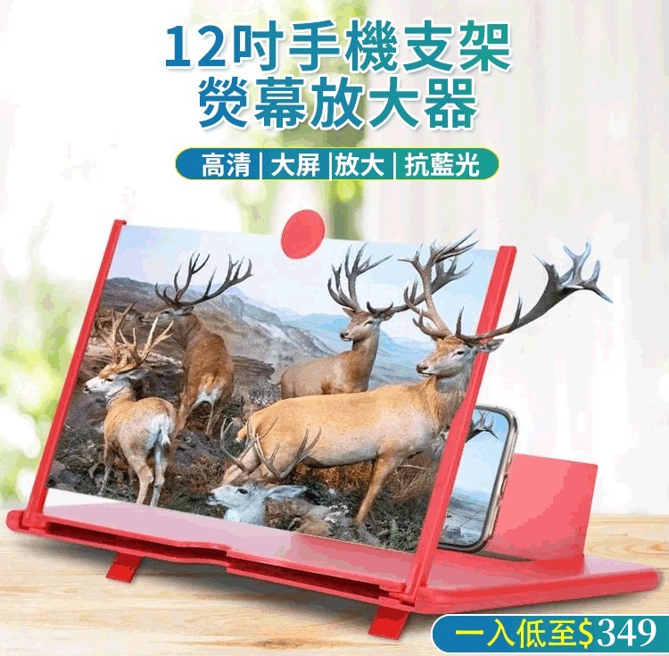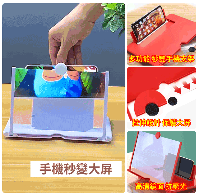 12吋手機支架螢幕放大器 防輻射抗藍光,保護眼睛,手機屏幕放大5倍,追劇更盡興!可折疊設計,輕薄便攜,矽膠墊設計更防滑!