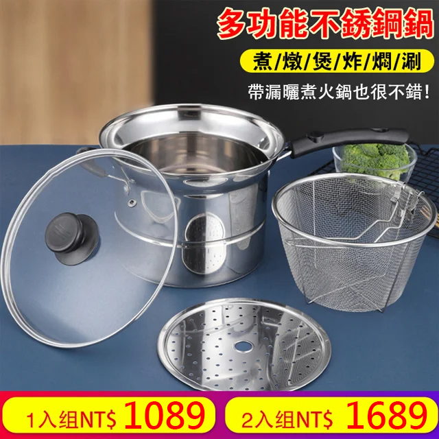 【超值家庭裝】日式不銹鋼多功能鍋2入組 加厚鋼材,僅需NT$1689