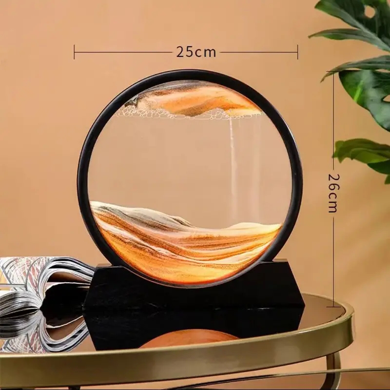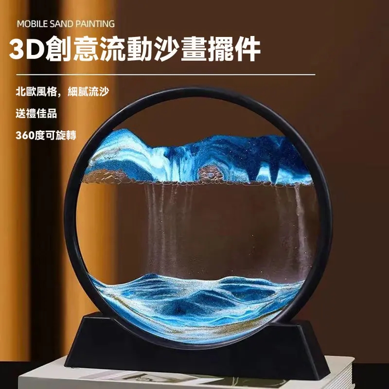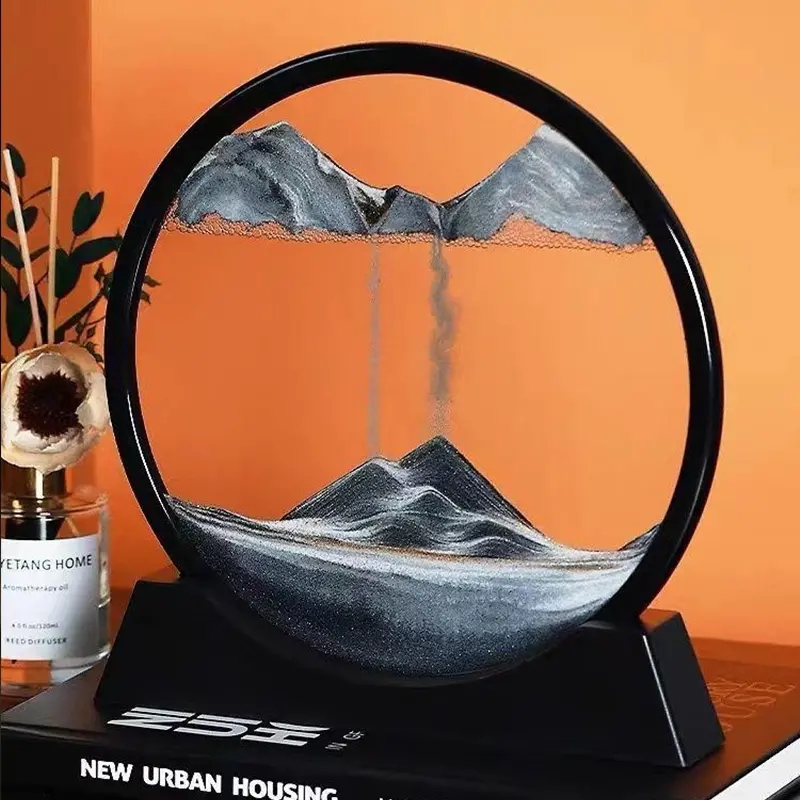 「輕奢3D山水流沙畫」藝術沙漏擺件,畫面千變,每次翻轉都是一次不同的風景,沙漏時間長達10分鐘以上,生日禮品擺件,送底座+調節器,家庭擺件