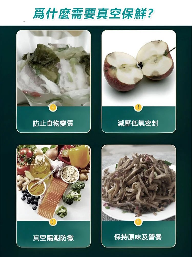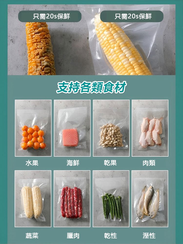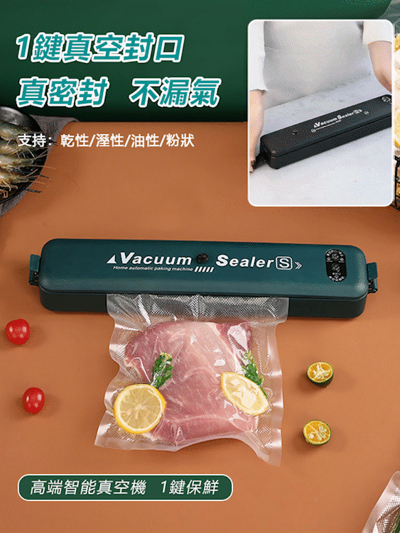 「真空封口機,真空袋可以重複利用」操作便捷,一鍵即可除氧,有效延長食物保鮮期,防止冰箱串味