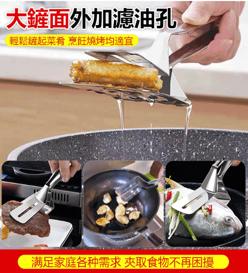 多功能雙面煎鏟夾 【家居神器】雙面煎鏟夾,加厚不鏽鋼,可夾可鏟可瀝油,烹飪燒烤多用途,輕鬆解決你的煩惱!