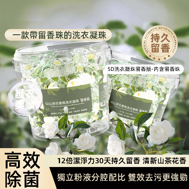 山茶花洗衣凝珠_「自帶留香珠_隨畤隨地自帶醴香_」持久留香五合一酵素洗衣凝珠,一顆=去汗+除菌+柔順+留香+抑菌_深層去汙,除螨抑菌,成分安全,母嬰可用