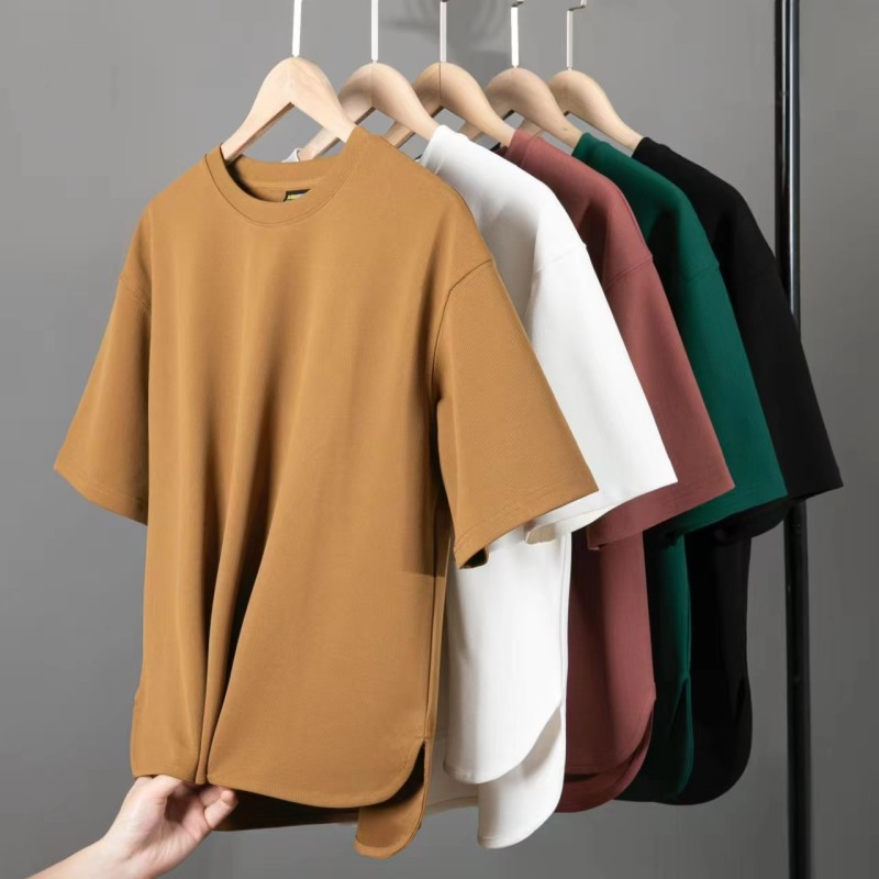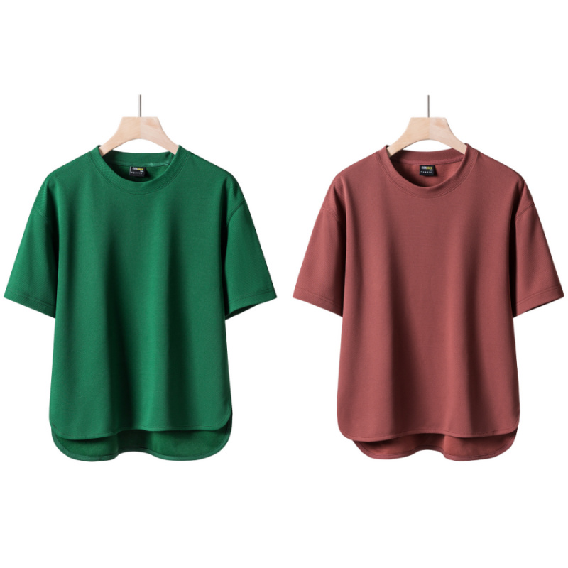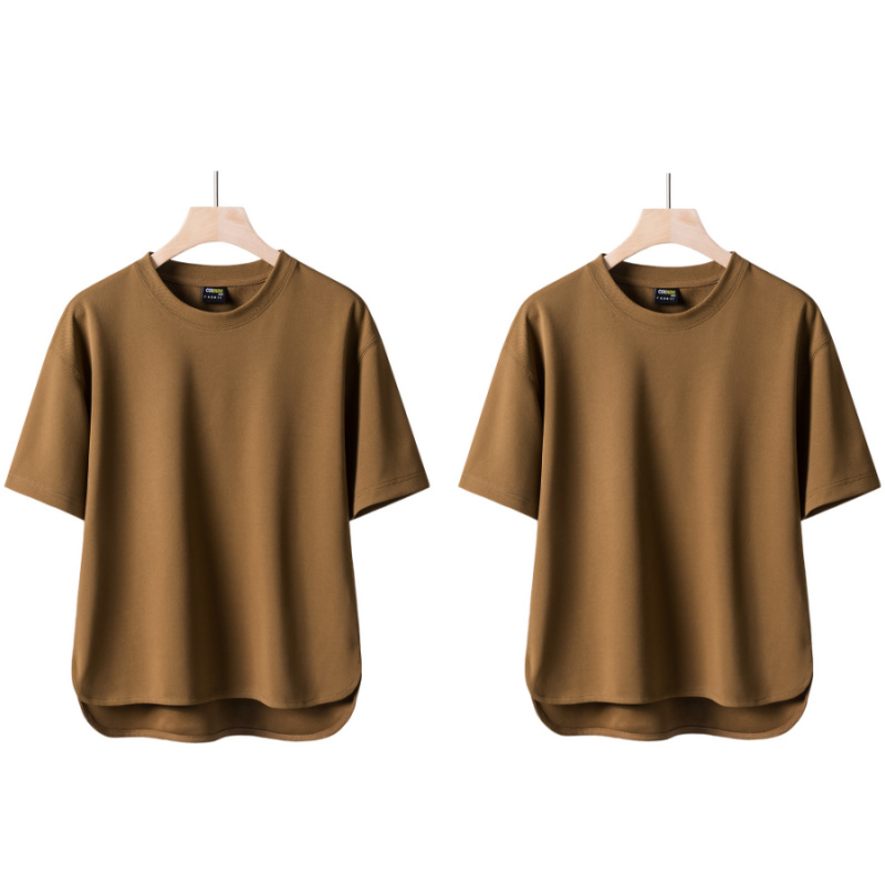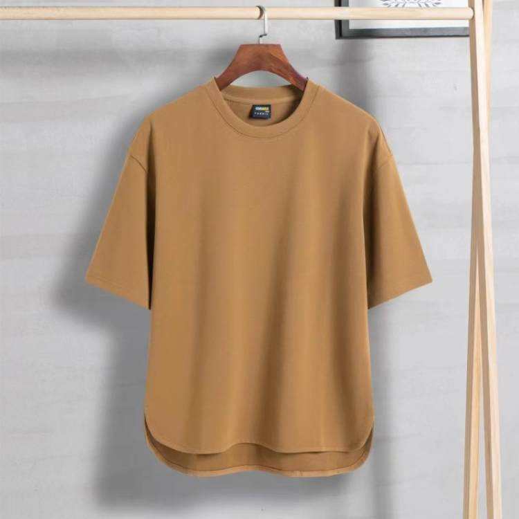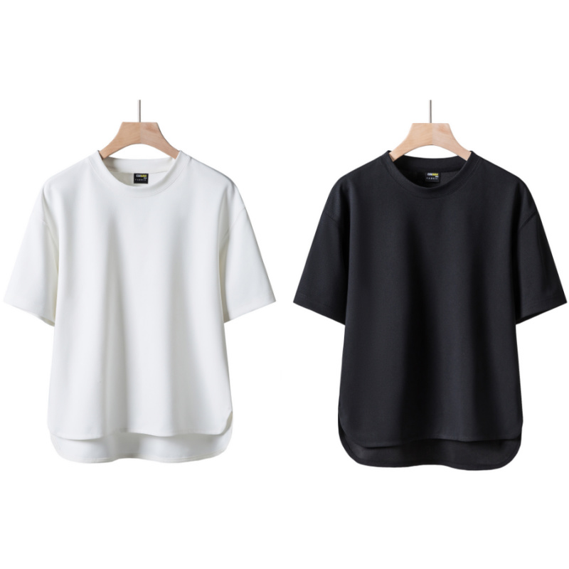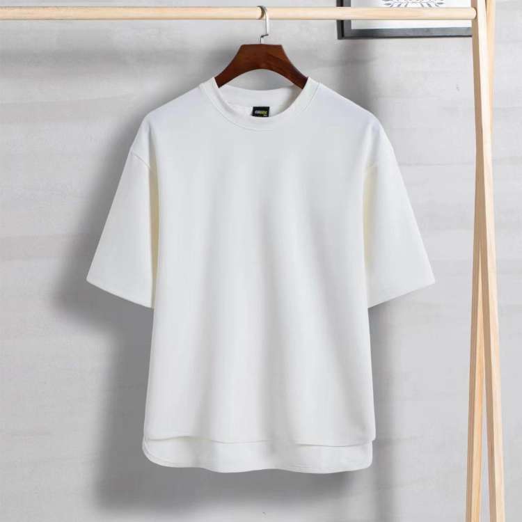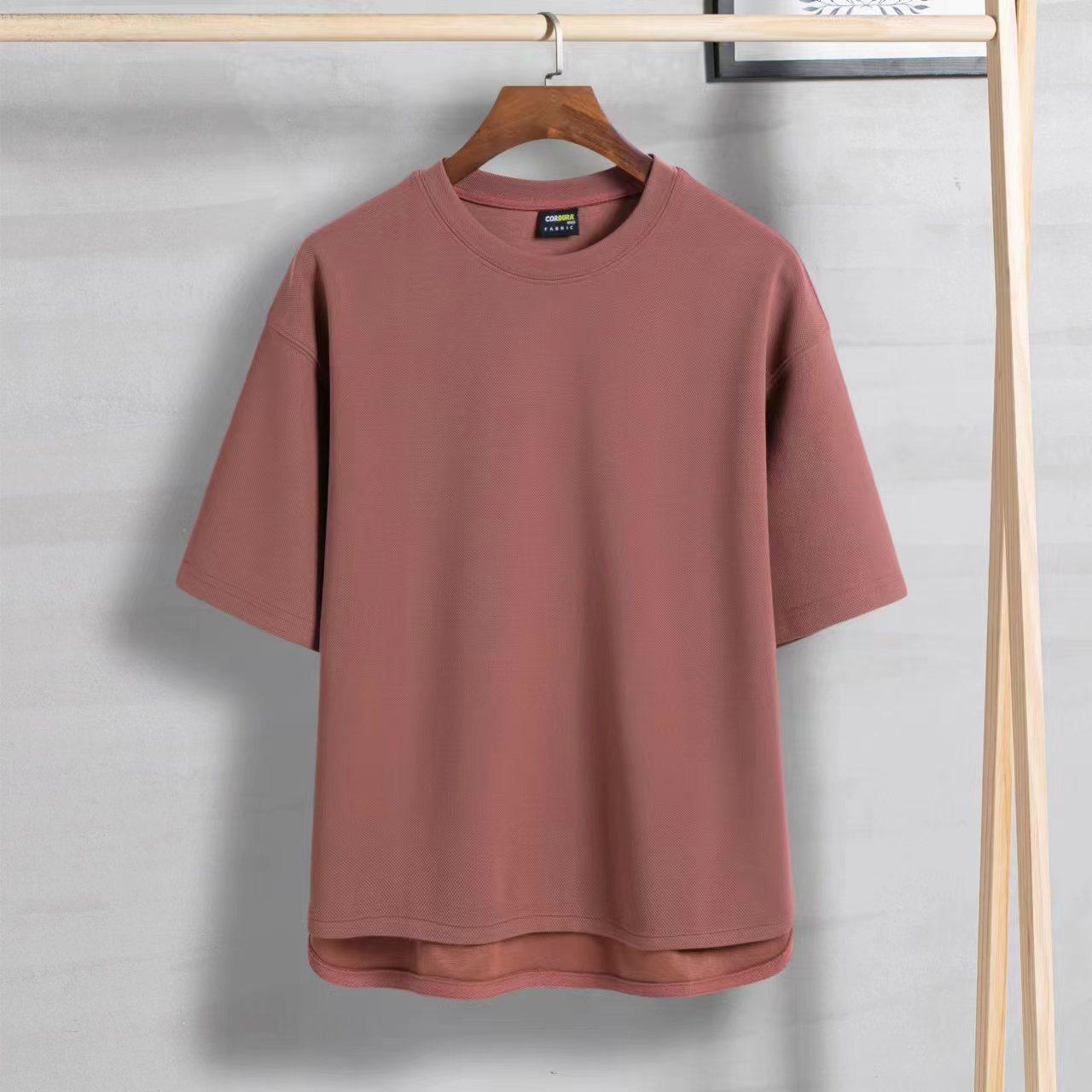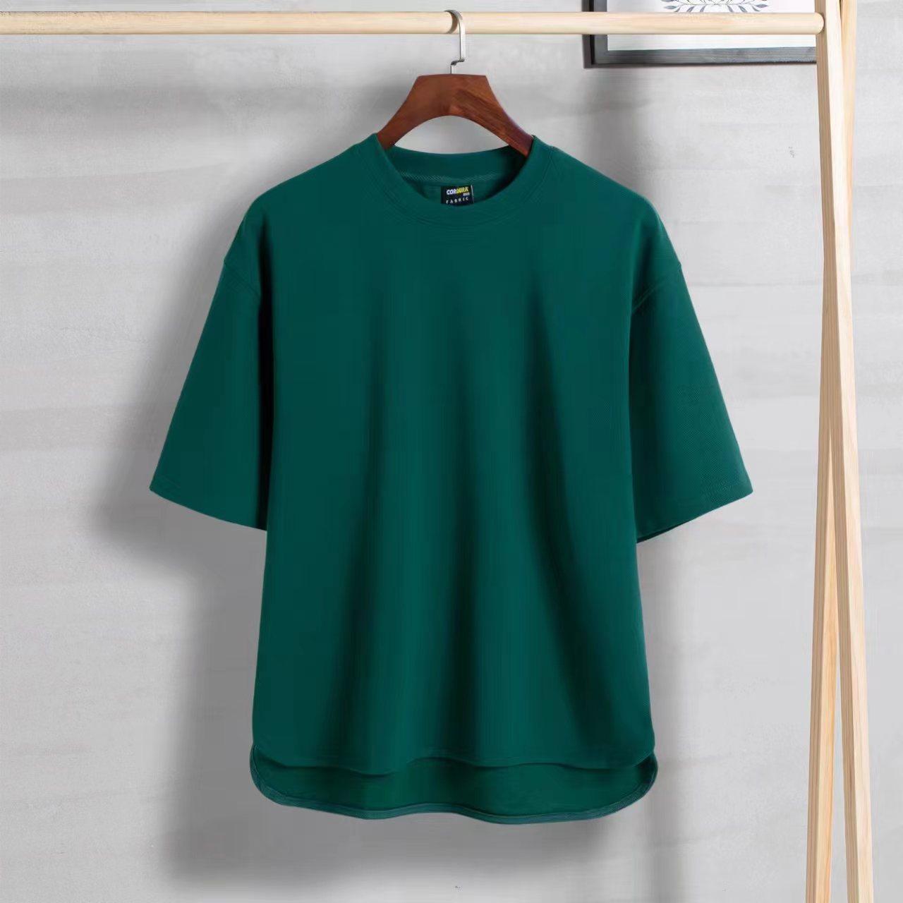 2024夏季新款日系落肩袖廓形純棉圓領短袖T恤